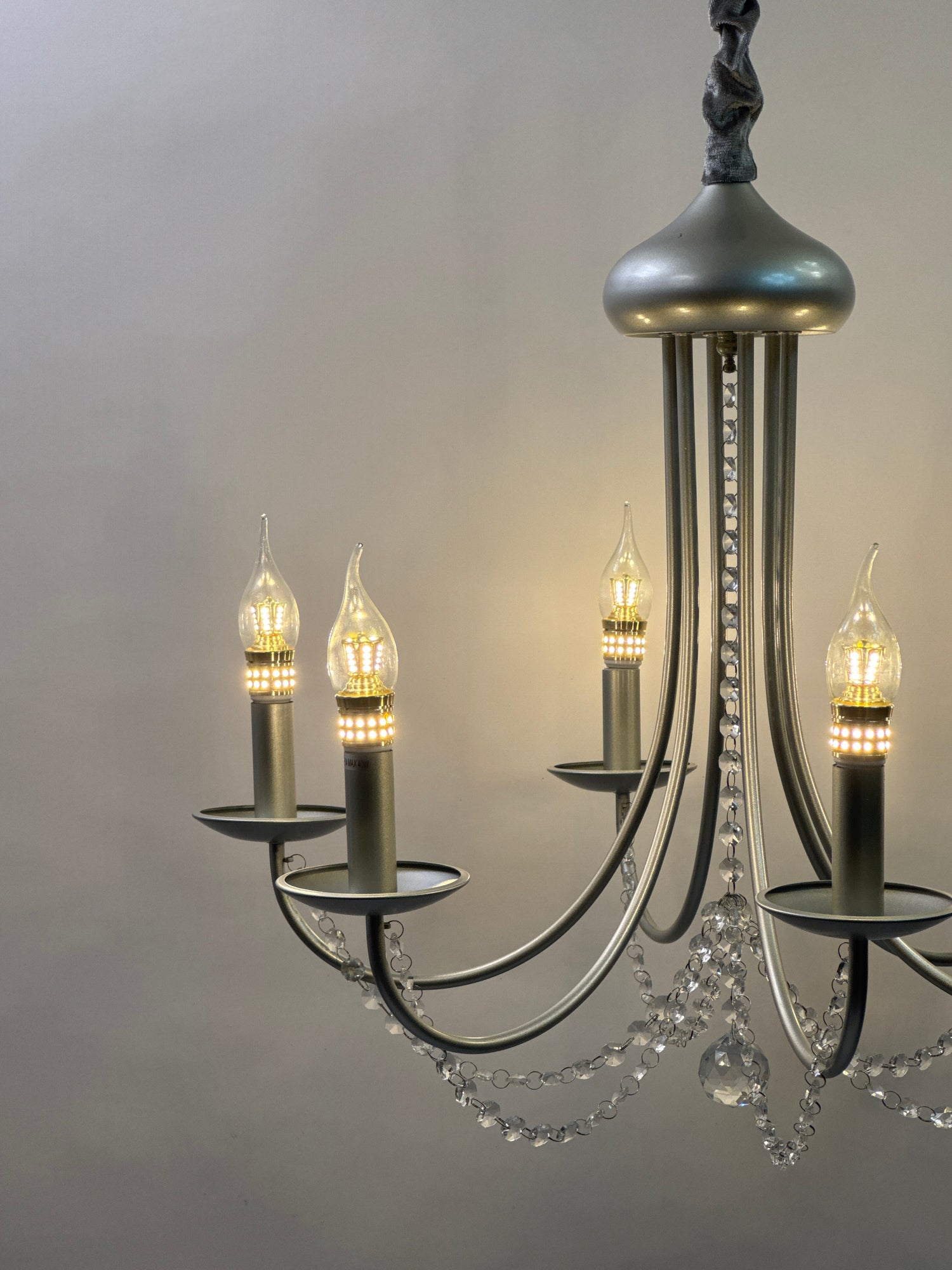 Elevate your interior with this elegant classic chandelier, featuring a sleek silver finish and gently curved arms adorned with delicate crystal bead chains. Perfect for dining rooms, living areas, or entryways, it brings timeless charm and refined style to any setting.